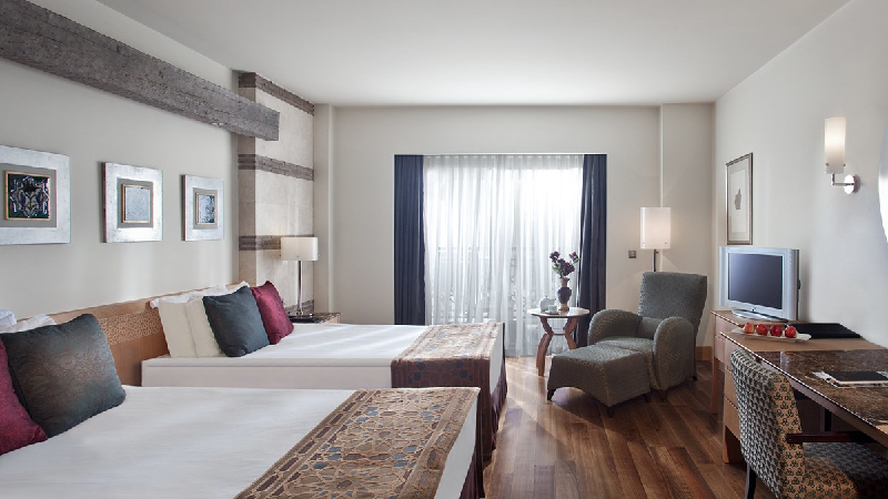 På hotellet mår ni bra med en kvalitativ all inclusive både i restauranger, snackbarer och bar, bekväma hotellrum och en riktigt serviceinriktad personal. Den stora poolen på 2123 kvadratmeter, den privata stranden eller piren ut i Medelhavet med tillhörande bar blir naturliga punkter efter en golfrunda under varma dagar och SPA-avdelningen med inomhuspool är inbjudande under vintern. Huvudrestaurangen Lale Restaurant serverar en diger buffé till frukost, lunch och middag och till det finns två a la carte restauranger med italienska och asiatiska teman. Barerna Pal Pavilion, Putters Bar och Piano Bar serverar cocktails och all annan förfriskning i härlig miljö.