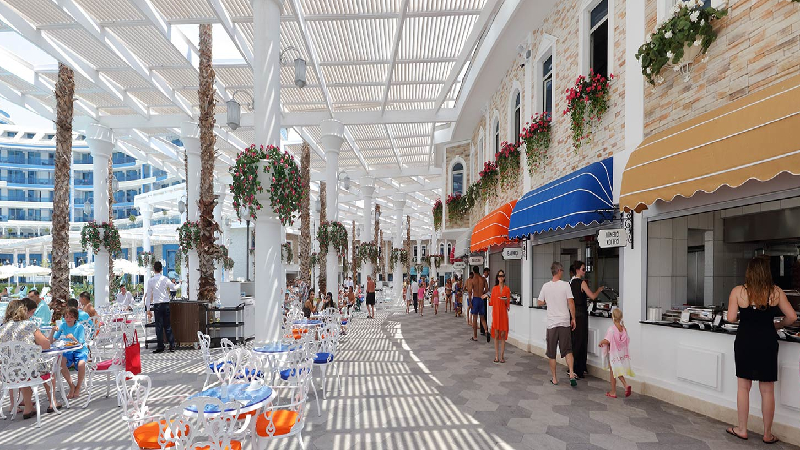 Restauranger & barer: Huvudrestaurangen Albatros serverar en diger och varierad buffé till frukost, lunch, middag och allt däremellan och efter. Ni väljer om ni vill sitta inne eller ute på restaurangens terrass ackompanjerad av Medelhavskvällens värme. Ni har ett digert utbud av a la carte restauranger på grannhotellet Sueno Delux, där ni betalar en mindre reservationsavgift på plats. Välj mellan Mexikanskt, Asiatiskt, Fisk, Italienskt eller Grillrestauranger. Till lunch kan rekommenderas att promenera till Sueno Delux stora mattorg vid poolområdet med massor av restauranger samlade på ett och samma ställe. På hotellet har ni flera barer att slå er ner i och skulle det inte räcka så finns en uppsjö alternativ på grannhotellet. Alla barer serverar importerade märkesdrycker och öl på flaska. Njut av bakelser, glass, kaffe och diverse snacks i hotellens kaféer och bagerier.