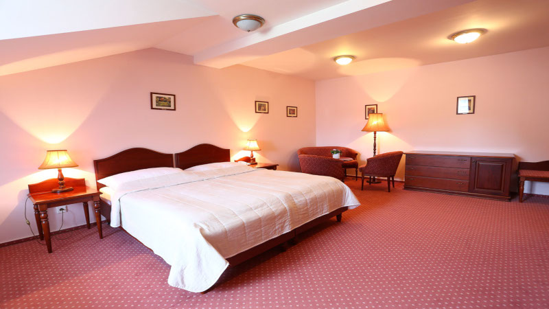 Rum: Rummen på Konopiste är utspridda i flera olika byggnader. Alla dubbelrum har sittgrupp, satellit-tv, minibar, luftkonditionering och badrum med badkar och dusch.