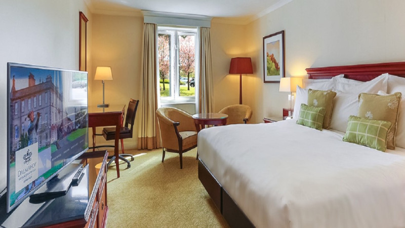 Hotellet erbjuder boende i modernt inredda dubbelrum med allt för en bekväm vistelse, pub och sportbar att ta igen sig i, en inomhuspool och restauranger. På Dalmahoy finns även flertalet möteslokaler och passar således perfekt som konferensdestination med golf och storstadsupplevelser.
