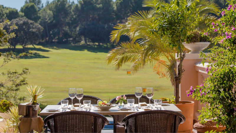 José María Olazábal´s golfbana startar och avslutas utanför receptionen. Här bjuds på 27 natursköna hål genom den spanska frodiga landsbygden och nationalparken Montgó. En banan som passar utmärkt för semestergolfen men samtidigt är en kul utmaning för de med lågt hcp. Utanför hotellet finns bra övningsområden för uppvärmning eller kvällsträning. Önskas golf nära flygplatsen i Alicante på ankomst- eller hemresedagen bokar vi rundor på bland annat Font del Loop och Alenda Golf.