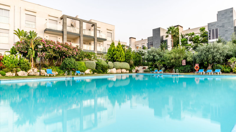 Boende sker i stora och eleganta lägenheter där ni har kök, vardagsrum, två sovrum, två badrum och balkong eller terrass. Frukost ingår i arrangemanget och på anläggningen finns en restaurang som drivs av stjärnkocken Álvaro Abad García samt en resturang i klubbhuset.