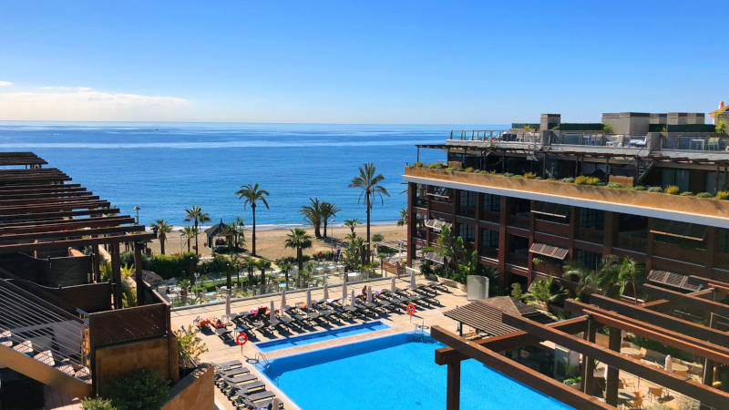 Bo ståtligt på strandhotellet 5*Gran Hotel Guadalpin som ligger beläget en kort promenad väster om den livliga partyorten Puerto Banus. Här finns bra restauranger, tjusigt poolområde, privat strand och